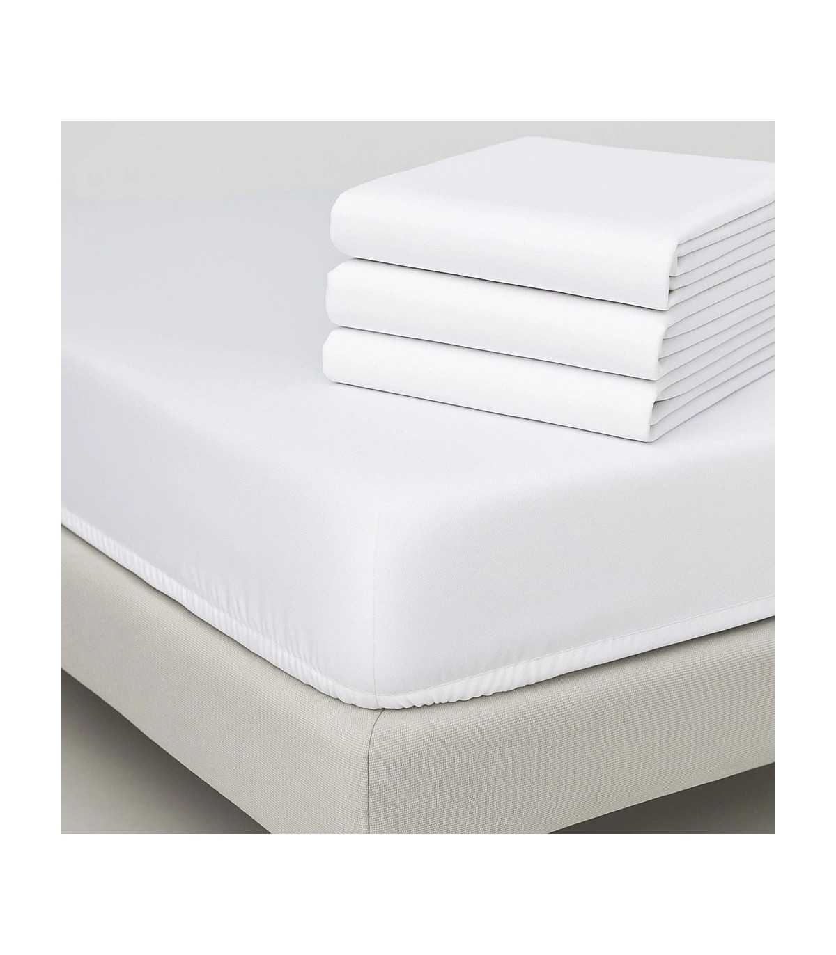 Hotel-Bettwäsche-Set-Pack x4 Baumwolle-Polyester | 144 Fäden 120 g/m² | x4 Spannbetttücher + Oberlaken + Kissenbezüge - Weiß
