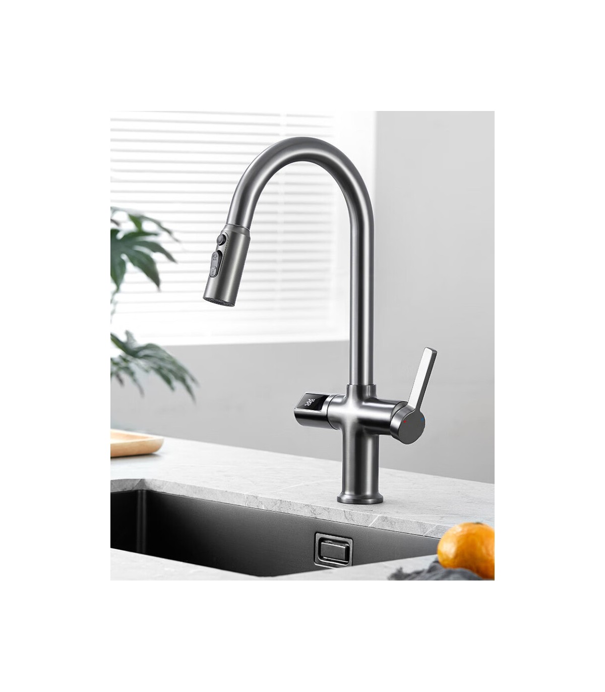 Kitchen Faucet Temperature Display LED LH-232 | Solid Copper | Pull-Out | Single Lever and 3 Water Modes