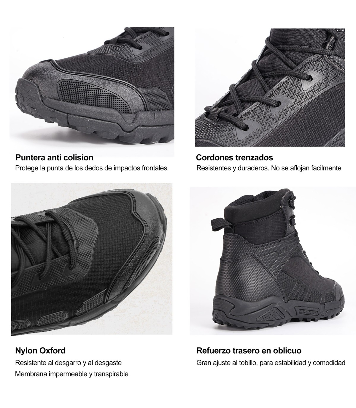 • MEMBRANA IMPERMEABLE: Nylon Oxford y membrana transpirable para pies secos y sin maceración.