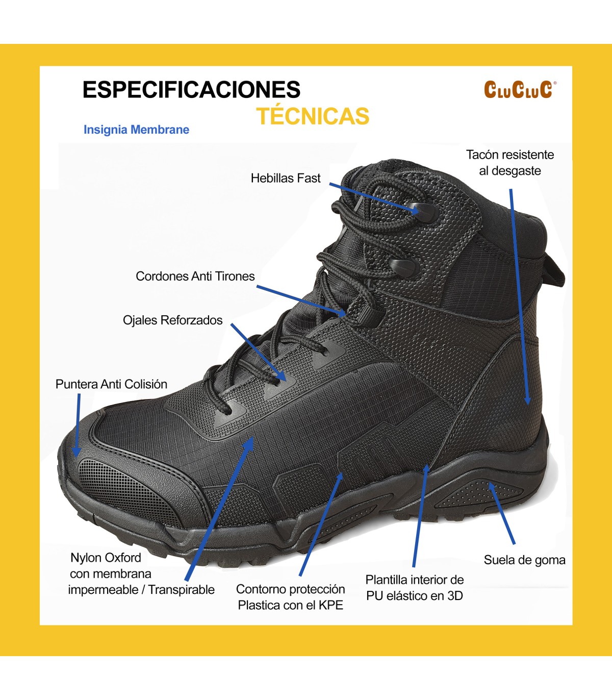 INSIGNIA est la botte de police professionnelle ultime : un modèle tactique ultraléger à tige mi-haute (6") conçu pour les forces de sécurité, les unités d’intervention et les utilisateurs exigeants. Sa forme large et sa semelle intérieure thermoformée en PU élastique 3D offrent un confort maximal, évitant la fatigue et la tension même lors de longues journées de travail ou d’action en extérieur.