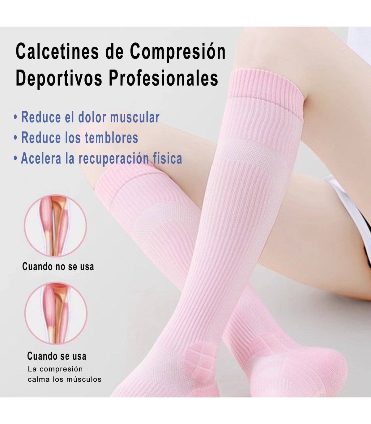 Chaussettes de Compression Musculaire Professionnelles pour Femme | Mi-Mollet | Protection et Soutien | Taille Unique 35–39 EU