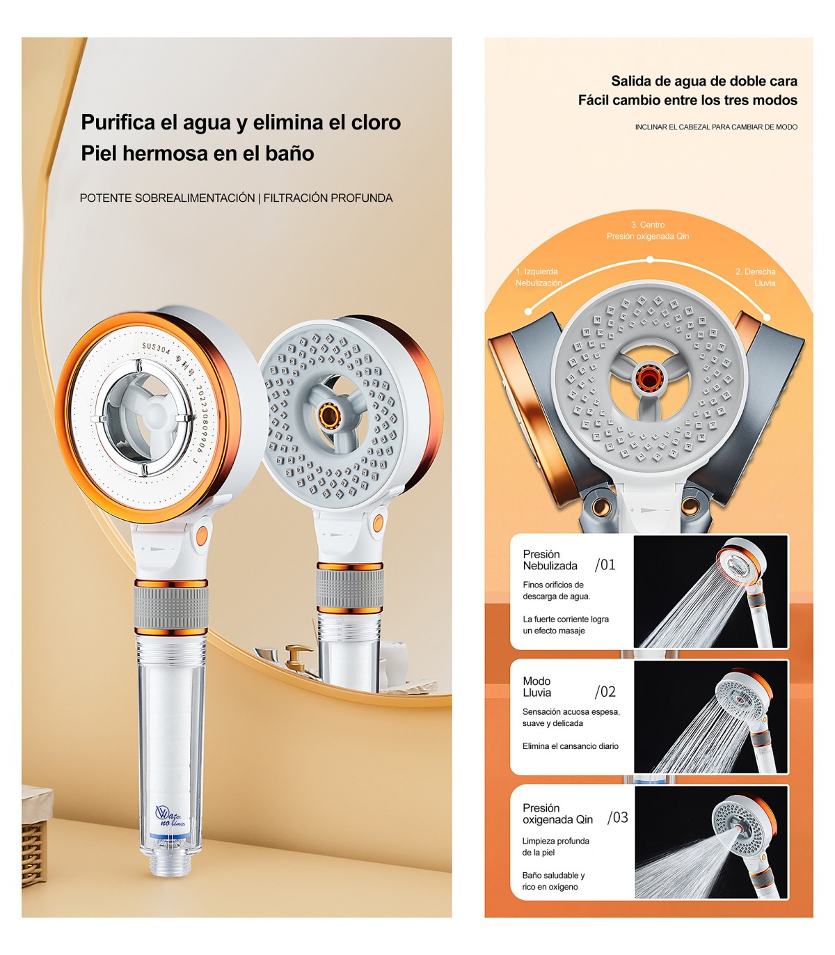 Douchehoofd Dubbelzijdig Oxygenatie Qin CC-FM003 | Onderdruk | 3 Waterstanden | Verbeterd Reinigen en Ontvetten | Met Filter