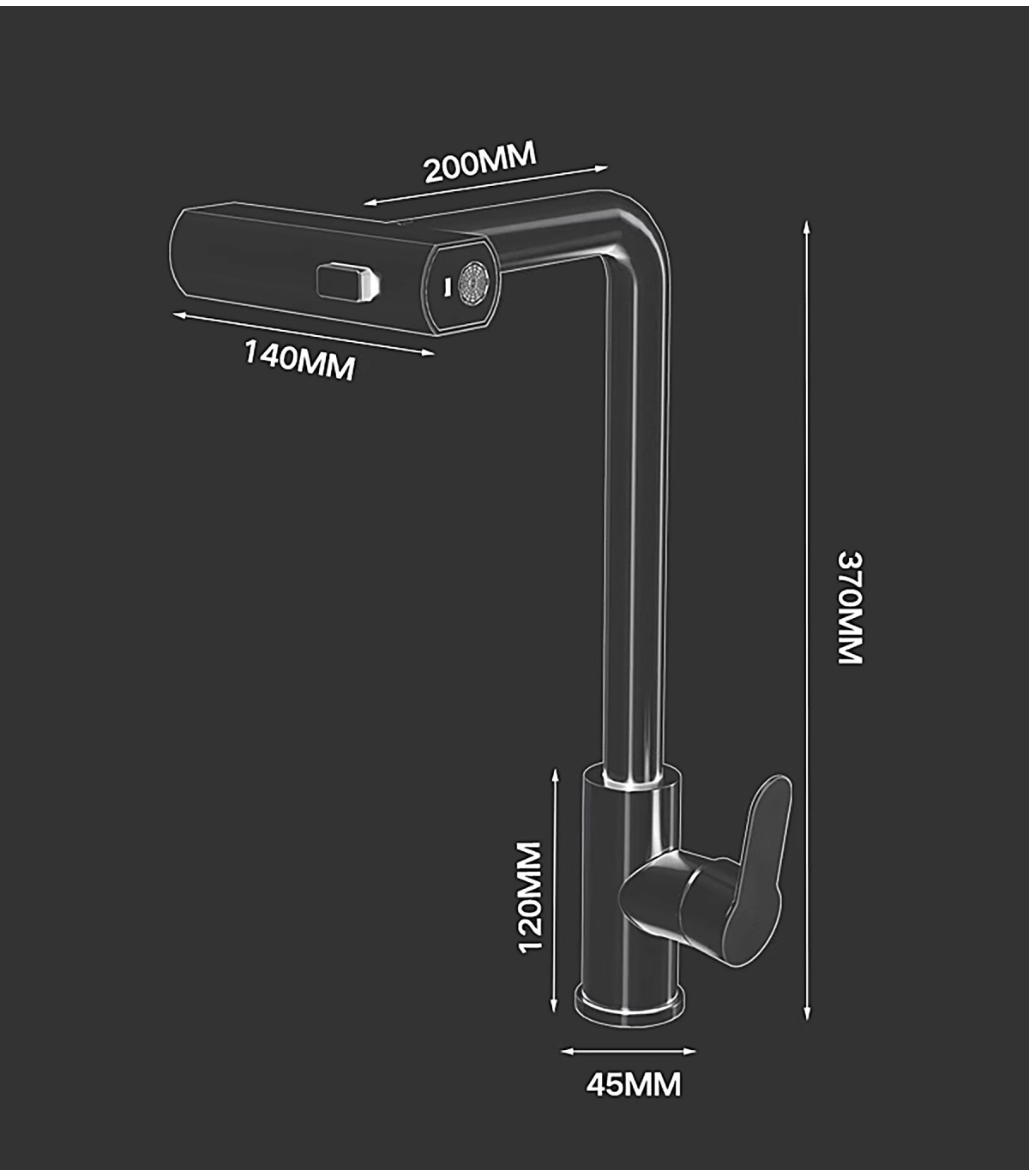 - ROTASJONSKRAN 360º: Uttagbar, egnet for kjøkken, vask og vask.