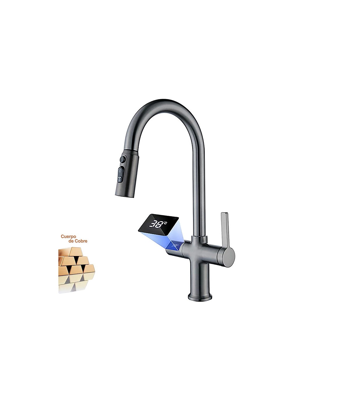 Zlew kuchenny Wyświetlacz Temperatury LH-232 | Miedź Masowa | Wyciągalny | Monokomendowy i 3 Tryby Wody