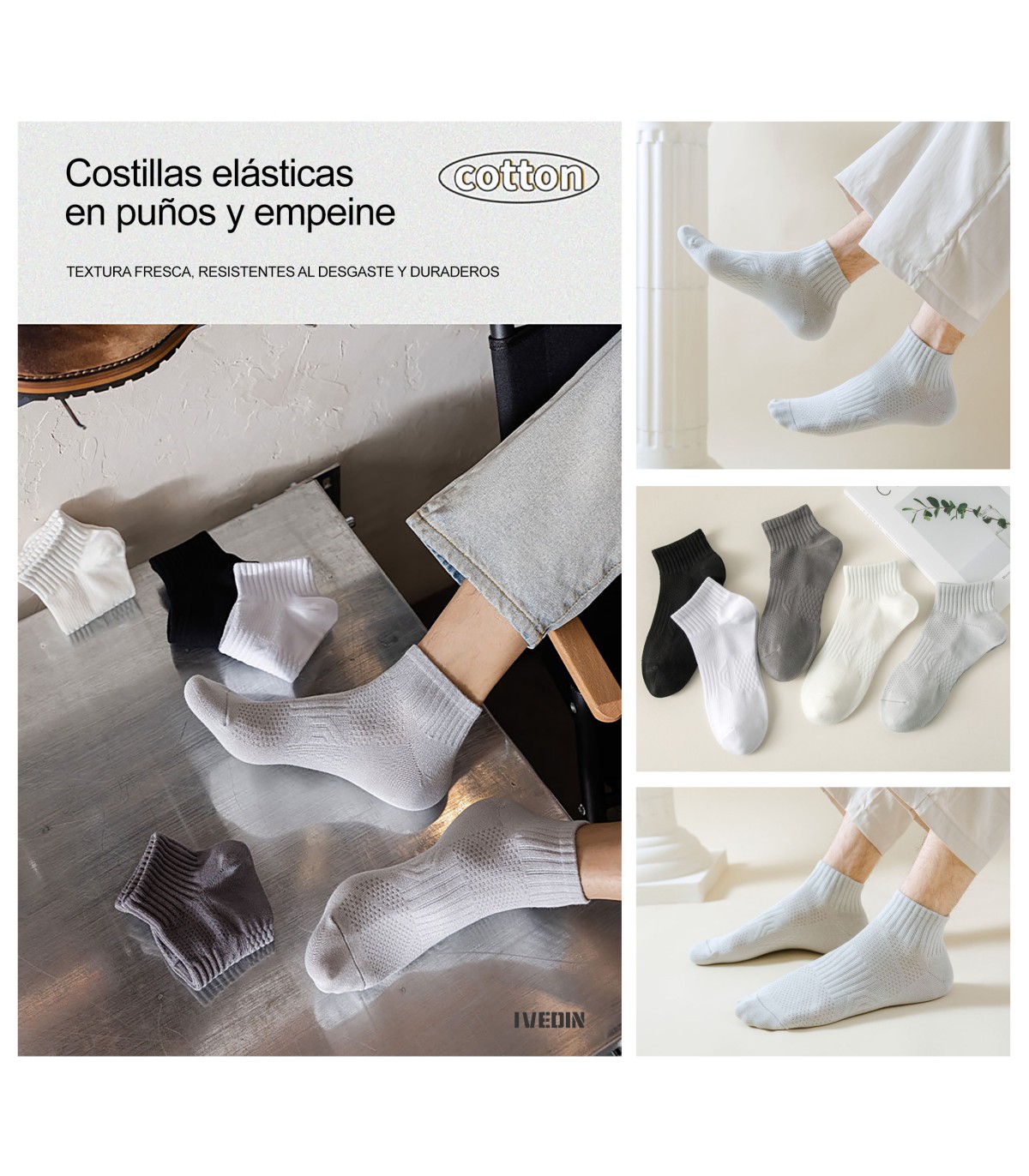 Skarpetki sportowe IVEDIN są stworzone dla osób poszukujących komfortu, stylu i wydajności. Ten zestaw 5 krótkich skarpet uniseks łączy nowoczesny design z cechami technicznymi, które poprawiają codzienne i sportowe doświadczenia.