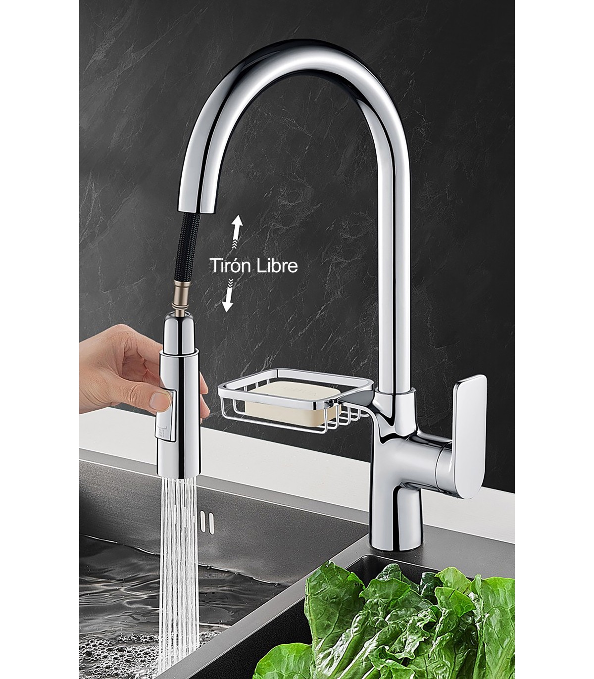 Torneira extrável, tiração livre tubo circula baioneta integrada, evitando desgaste ruído. Garante funcionamento silencioso duradouro.