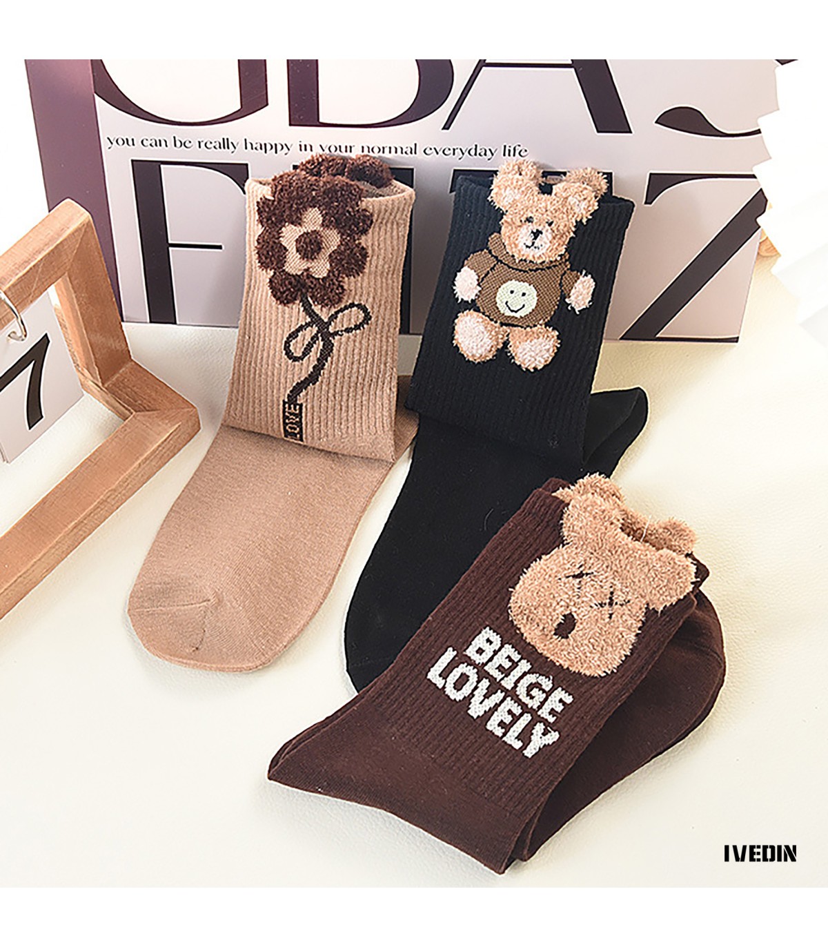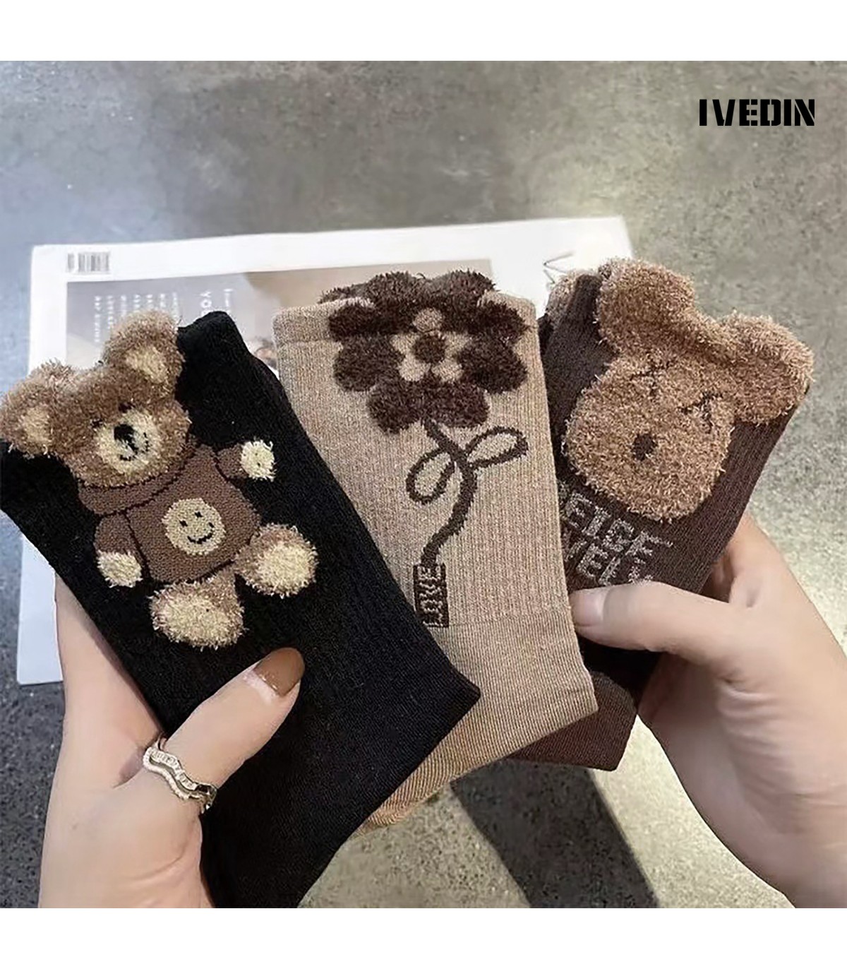 Desfrute do Pack de 3 Meias Texturizadas 3D com Relevo para Mulher IVEDIN, que combina tecnologia japonesa Jacquard com design exclusivo, oferecendo resistência, maciez e estilo.